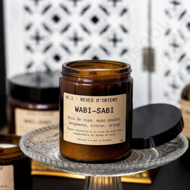 Avoir une bougie Wabi-Sabi chez soi, c'est plus que s'offrir une bougie parfumée, c'est adhérer à une philosophie : celle de trouver plaisir à voir s'écouler le temps et de l'accepter au travers d'une bougie qui brûle. Une bougie artisanale fabriquée en Bretagne : sa mèche en bois apporte un supplément d'âme tout en assurant qu'elle se consume en 25H environ, la cire utilisée est une cire de soja sans OGM et les parfums sont certifiés sans phtalates pour un plaisir sans compromis.
